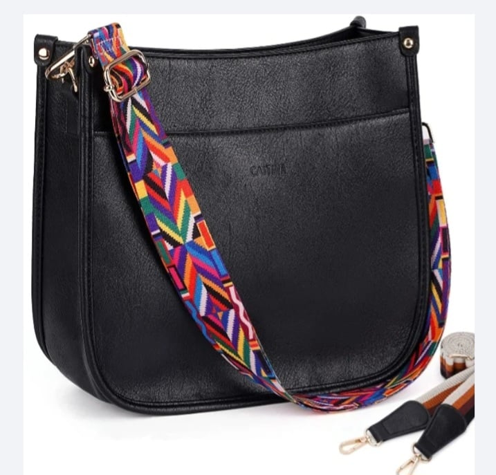 Woman's vegan leather hobo shoulder handbags. Comes with adjustable guitar straps. 2 outer side pockets, 2 inside compartments, 1 zip inter pocket. Inside is water resistant.